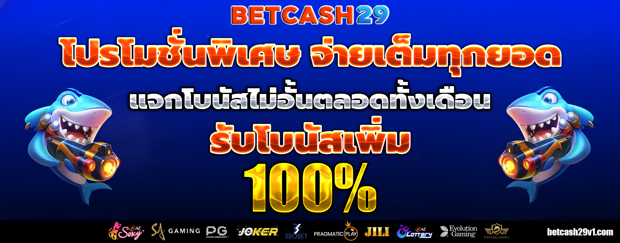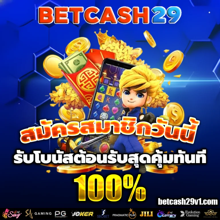 betcash29 เป็นเว็บพนันออนไลน์ที่มอบโปรโมชั่นสุดพิเศษสำหรับสมาชิกใหม่ที่น่าสนใจมาก ๆ โดยเฉพาะโบนัสต้อนรับ 100% ที่จะช่วยเพิ่มเงินทุนให้คุณได้เล่นเกมพนันได้นานขึ้น เมื่อสมัครสมาชิกใหม่กับ betcash29 คุณจะได้รับโบนัสพิเศษนี้ทันทีเมื่อทำการฝากเงินครั้งแรก ซึ่งเป็นโอกาสดี ๆ ที่จะได้เริ่มต้นเดิมพันด้วยเงินทุนที่มากขึ้น